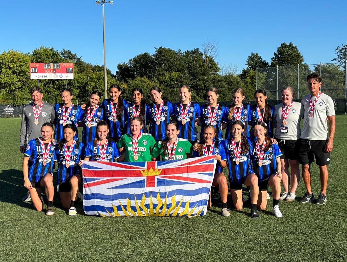 Coquitlam Metro-Ford Soccer Club (CMFSC) is proud to announce that three of its youth teams participated in the highly competitive 2025 Canada Soccer Player-Development Program (PDP) Championship, held from August 27-31, 2025, in Vaughan, Ontario. The PDP Championship brings together Canada’s top U-15 and U-17 boys and girls teams from standards-based leagues across British Columbia, Alberta, Ontario, and Québec.